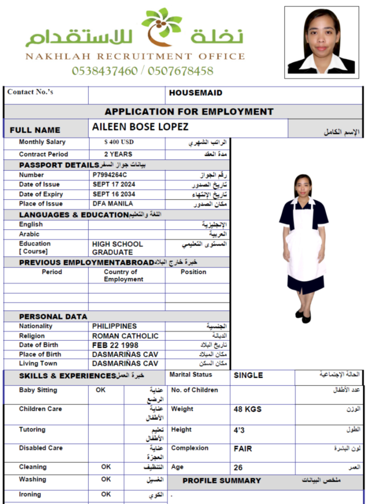 AILEEN BOSE LOPEZ لحجز هذه السيرة اضغط هنا تواصل معنا العودة لصفحة السيرة الذاتية DYNABETH TIAGAN BALAD-ON ROSEMARIE PAALISBO CATILOC