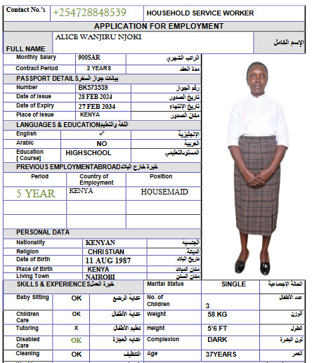 ALICE WANJIRU NJOKI لحجز هذه السيرة اضغط هنا تواصل معنا العودة لصفحة السيرة الذاتية NABUDE STELLA FLORENCE GECHEMBA ANYEGA