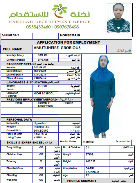 AMUTUHEIRE GRORIOUS لحجز هذه السيرة اضغط هنا تواصل معنا العودة لصفحة السيرة الذاتية AKUGIZIBWE JOVIA NABUDE STELLA