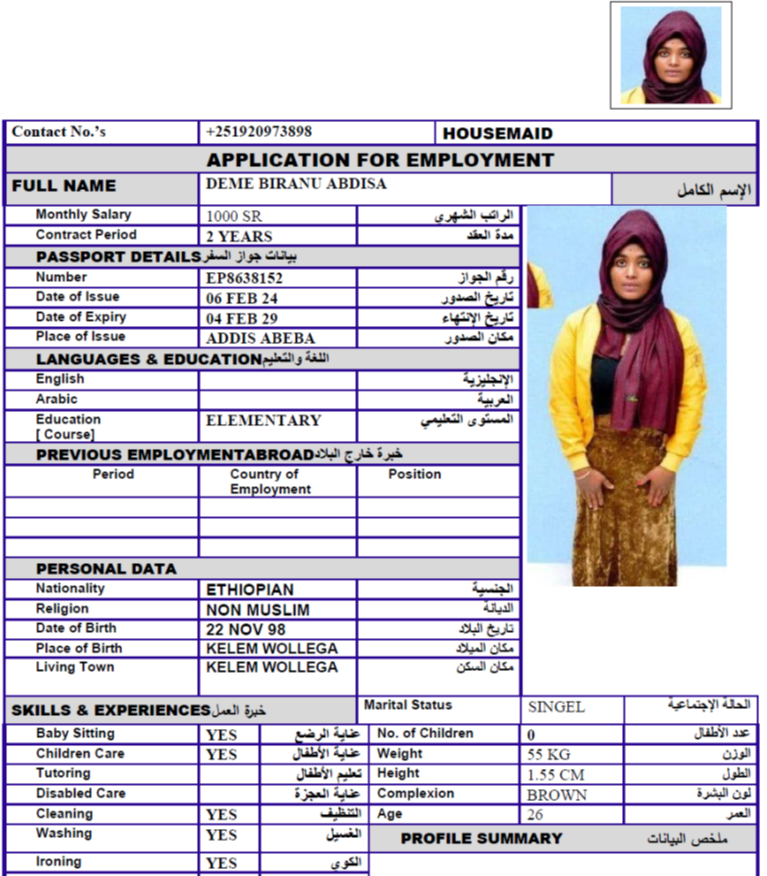DEME BIRANU ABDISA لحجز هذه السيرة اضغط هنا تواصل معنا العودة لصفحة السيرة الذاتية SAMRAWIT GETACHEW FIKRE BETELHEM BEGASHAW BELACHEW