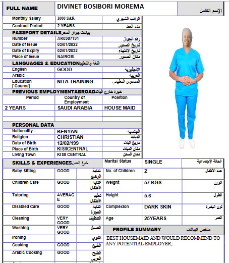 DIVINET BOSIBORI MOREMA لحجز هذه السيرة اضغط هنا تواصل معنا العودة لصفحة السيرة الذاتية FAITH KEMUNTO NYAMWEYA HALIMA HAMASA SALIM