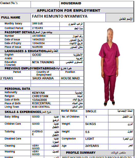 FAITH KEMUNTO NYAMWEYA لحجز هذه السيرة اضغط هنا تواصل معنا العودة لصفحة السيرة الذاتية IMMACULATE KERUBO OKERO DIVINET BOSIBORI MOREMA