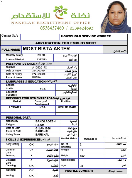 MOST RIKTA AKTER لحجز هذه السيرة اضغط هنا تواصل معنا العودة لصفحة السيرة الذاتية BAKUL BEGUM MARICEL INOSIPSIP TIGUELO